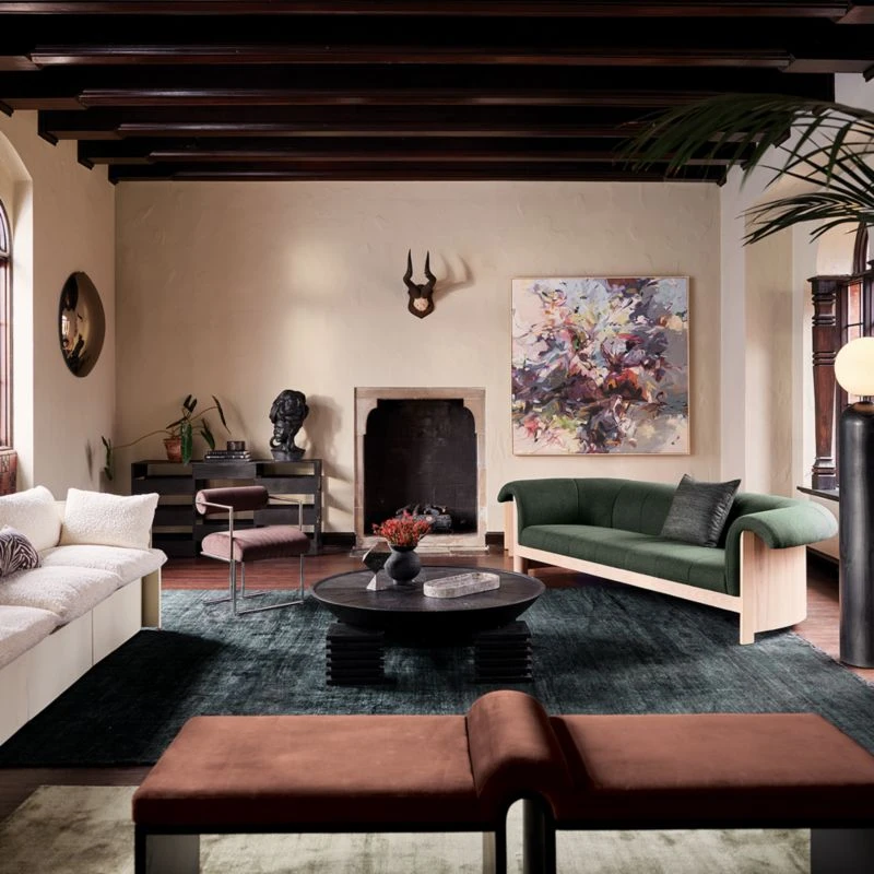 This remarkable piece draws inspiration from the traditional 4-legged Kikuyu stools made specifically for women out of singular tree trunks—a stool often found in the center of the “nyumba” or home. Designed by Sandra Githinji of Sandra Githinji Studio, this coffee table features a top with a mesmerizing pinwheel pattern made of ebonized oak certified sustainable by the Forest Stewardship Council ® (FSC). It rests atop four solid ebonized oak legs whose geometry marries clean horizontal lines with gentle interior-facing curves. CB2 exclusive.