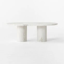 Liguria Oval White Marble Coffee Table With White Marble Base