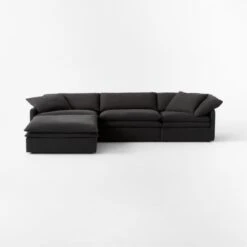Mattea 4-Piece Charcoal Black Performance Linen Sectional Sofa With Left-Arm