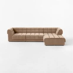 Pezzo 4-Piece L-Shaped Toffee Brown Velvet Sectional Sofa With Left Arm