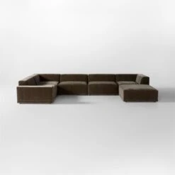 Faible 6-Piece U-Shaped Grey Performance Velvet Sectional Sofa With Left Arm