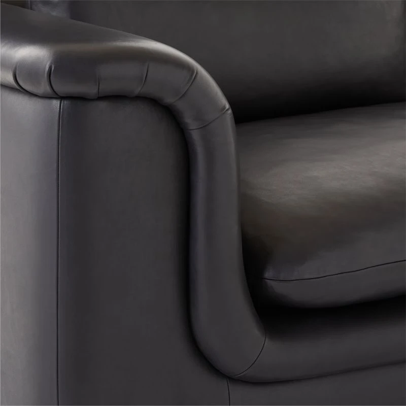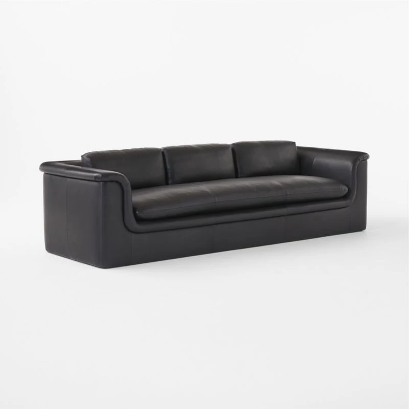 Low-slung sofa by Melbourne-based VUUE invites you to curl up into indulgent Italian leather. Delicately pleated arms nod to tradition, while the sofa’s sculpted curves and sumptuous leather upholstery take on a more modern aesthetic. Tanned in Italy, Moore & Giles top-grain leather surfaces natural markings, scars and tonal variations for a lived-in look full of rich character. CB2 exclusive.