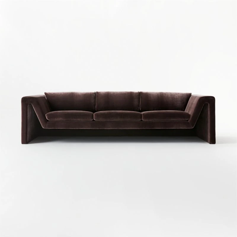 Plush faux mohair fabric and severe angular design meet in this vintage ’70s Italian-inspired sofa by VUUE. Sleek, sculptural silhouette evokes an outline: solid frame wraps around the back and sides, angling at the front and suspended over the ground. A major design statement we simply can’t get enough of. Learn more about VUUE on our blog. CB2 exclusive.