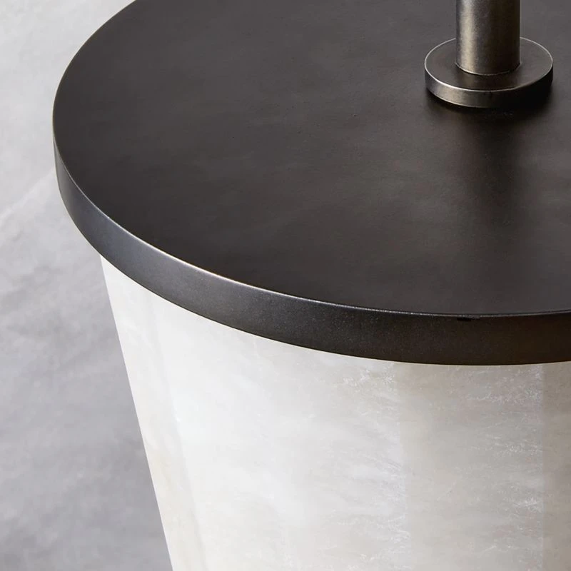 - Blackened dyed aluminum top shade cap, bottom finial and canopy