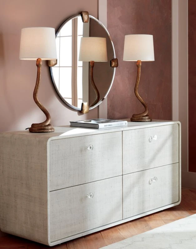 - Steel and resin with antique brass finish