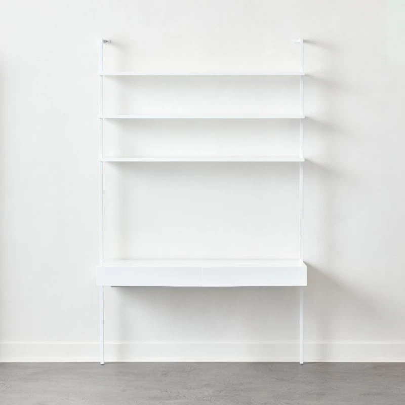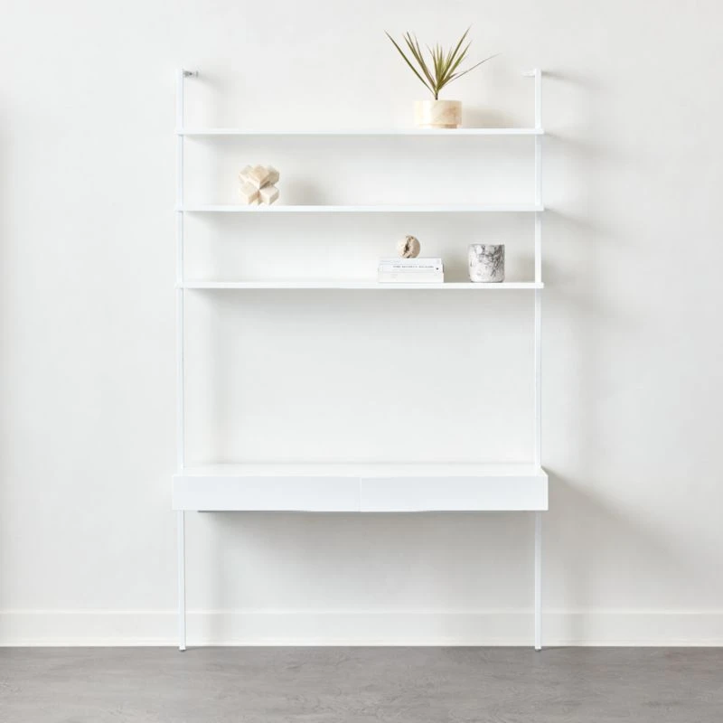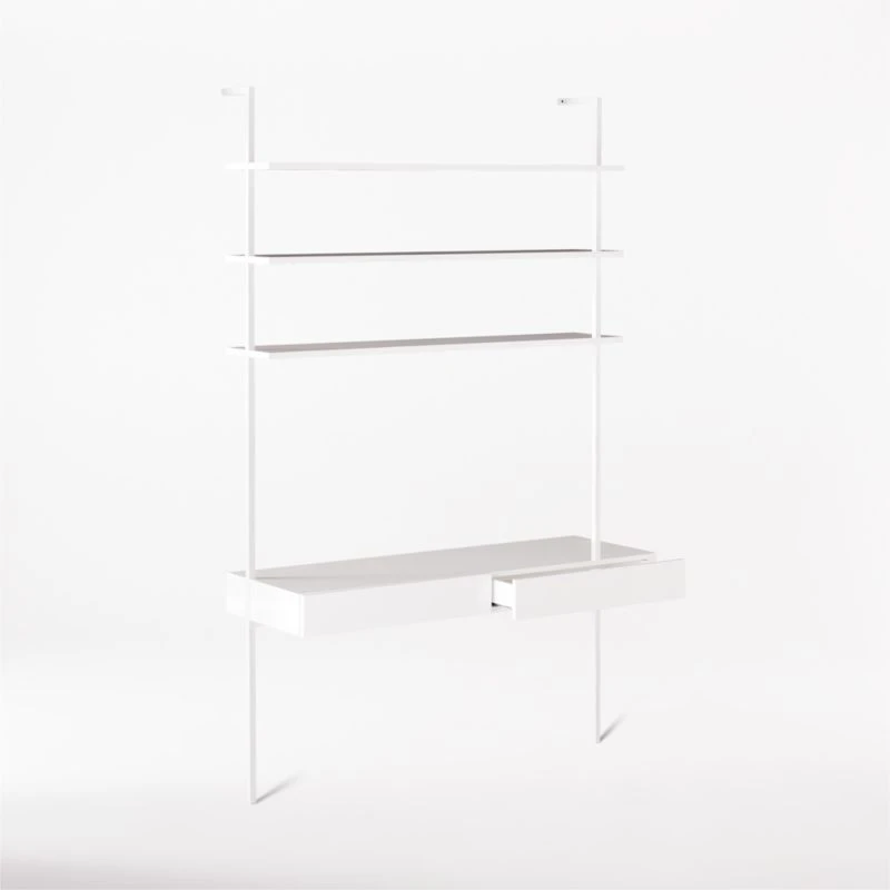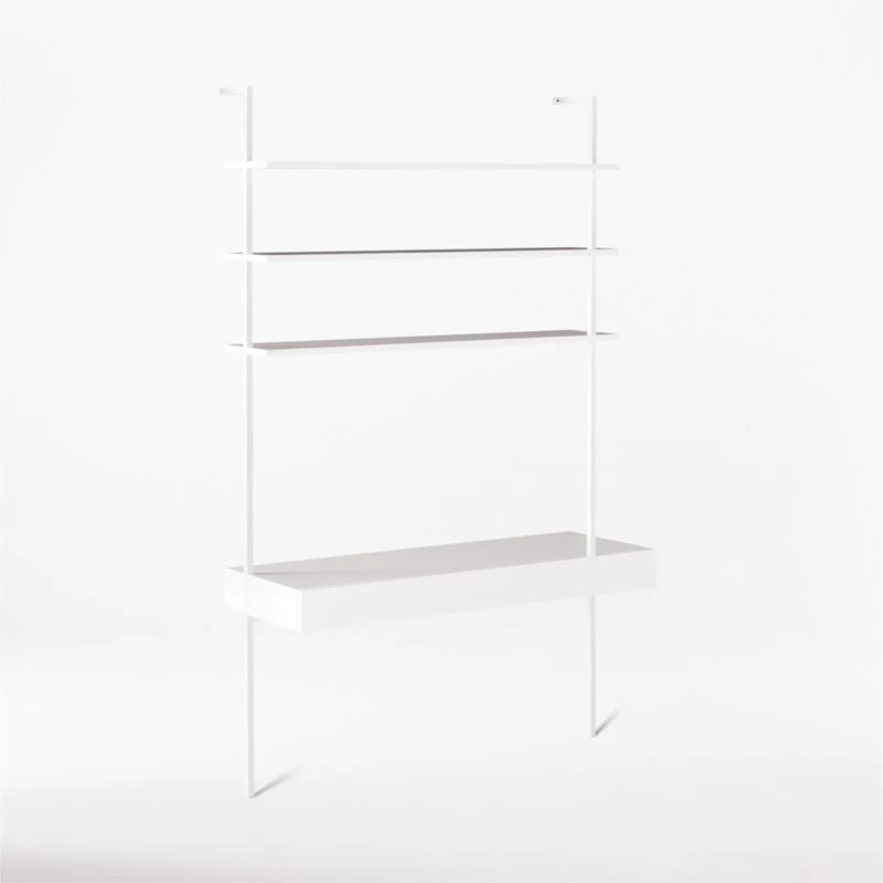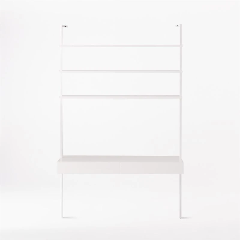 Stairway 2-Drawer White Wall Mount Desk With Shelves 96”