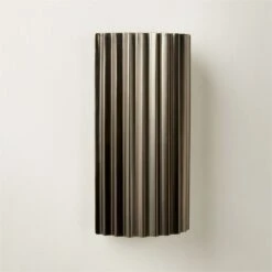Wall sconce by Sasha Adler features undulating lines of solid blackened brass. Ridged design adds a hint of ’70s glam to any room, while edges of unlacquered brass gleam and catch the light. CB2 exclusive.
